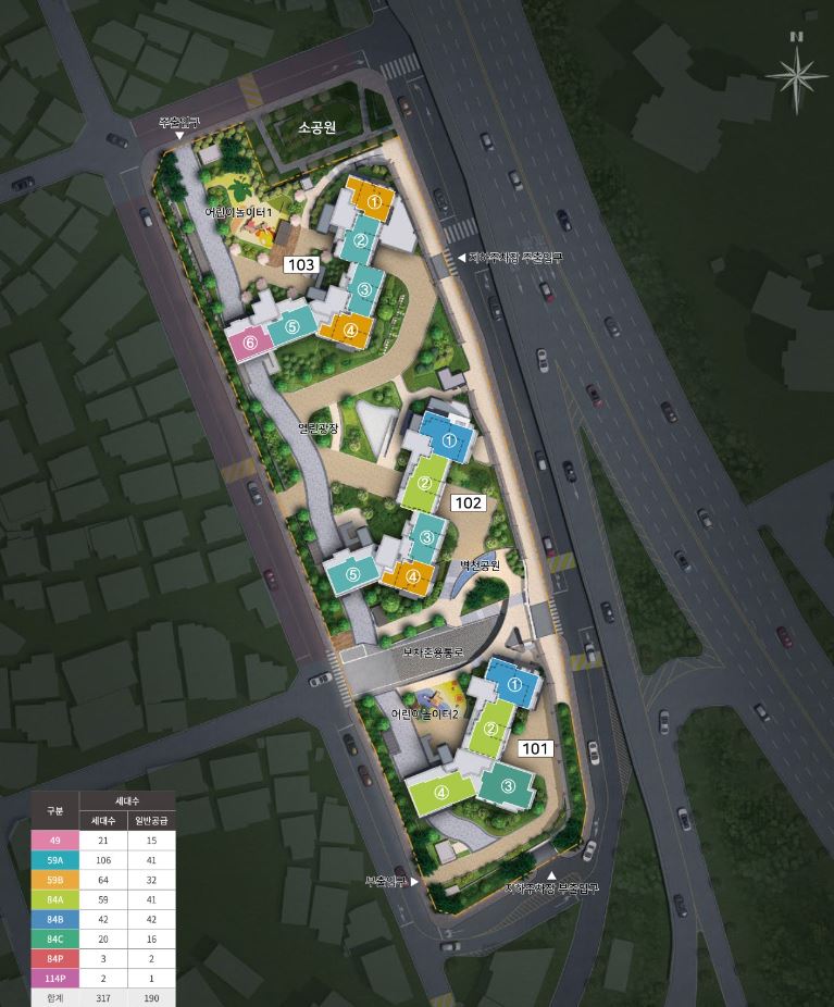 호반써밋 개봉은 총 317세대 입니다. 이중에서 일반분양이 190세대 입니다.
