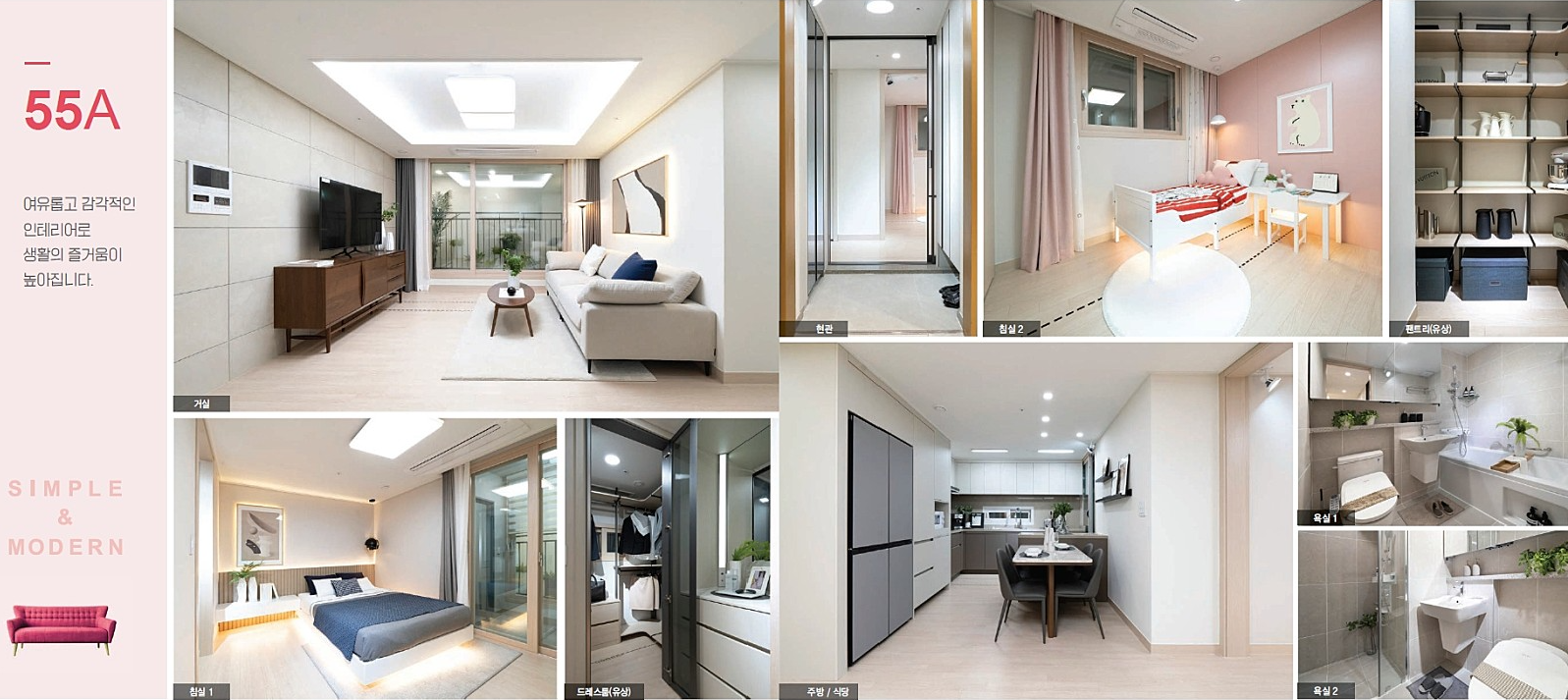 금번 모집공고의 평면도 타입은 55A 타입 한가지 입니다.