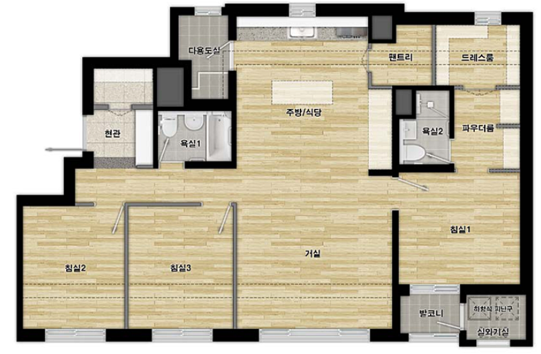 기본 59제곱미터의 평면도도 있지만 신기한 형태의 평면도도 있습니다. 물론 장 단점은 있을 수 있습니다.