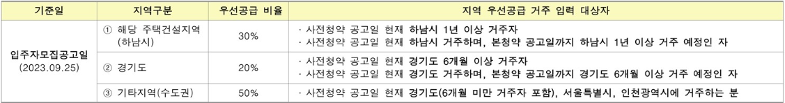 지역우선 공급물량 배정기준은 아래와 같습니다.