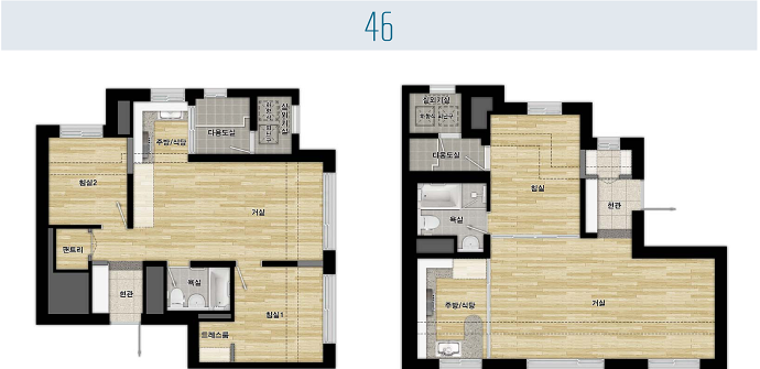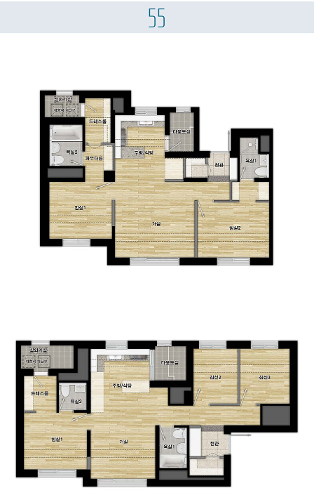 하남교산지구와 안산장상지구의 타입별 평형별 예시 평면을 아래 정리해 놓았습니다. 타입으로는 전용면적으로 46, 55, 59 3가지가 있습니다.