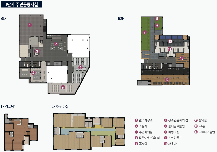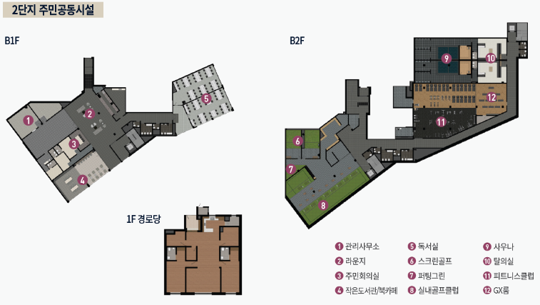 1단지와 2단지의 커뮤니티를 살펴보겠습니다.