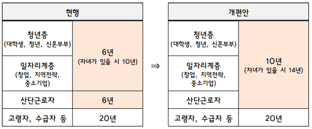 6년간 거주할 수 있었던 규제가 최대 거주기간 10년으로 연장 되었습니다. 그리고 유자녀의 경우는 10년간 거주할 수 있었던 규제가 최대 거주기간 14년으로 연장 되었습니다.
